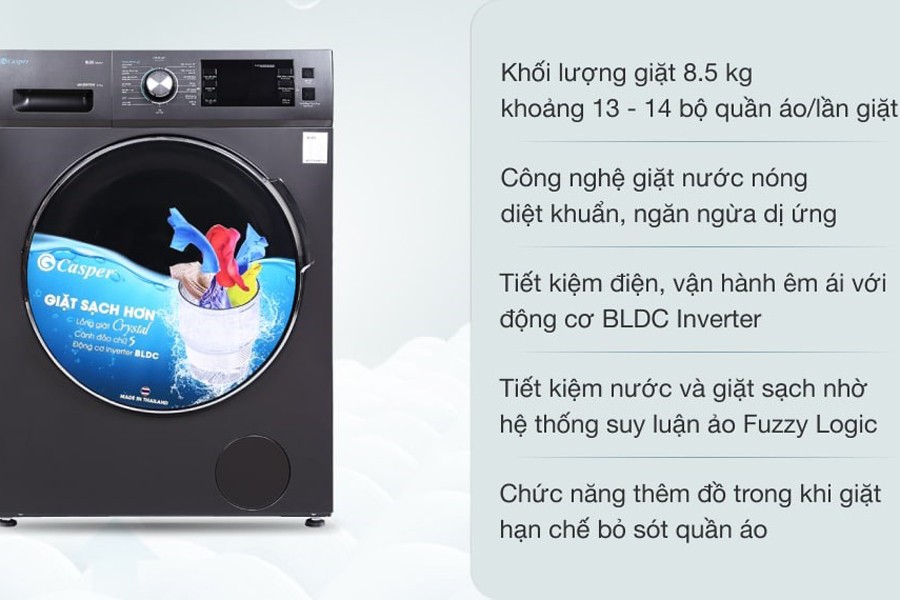 Máy giặt Casper Inverter sử dụng động cơ BLDC từ nam châm vĩnh cửu, giúp giảm rung lắc, không gây tiếng ồn khó chịu & đặc biệt bền bỉ, chống hao mòn theo thời gian. Tối ưu hiệu quả vận hành của động cơ, tránh làm phiền bạn bởi tiếng ồn lớn.