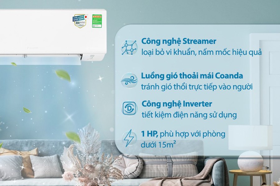 - Công nghệ lọc khí Streamer là công nghệ độc quyền của Daikin, với cơ chế giải phóng các electron tốc độ cao va chạm với oxy, nito, hơi nước trong không khí tạo ra các phần tử có tính phân hủy mạnh mẽ, tác động ức chế các chất gây mùi, các tác nhân gây ô nhiễm như vi khuẩn, vi rút, nấm mốc, phấn hoa, mạt bụi và bụi PM2.5 trong các thành phần gây dị ứng mang lại hiệu quả thanh lọc tối đa nguồn không khí xung quanh.