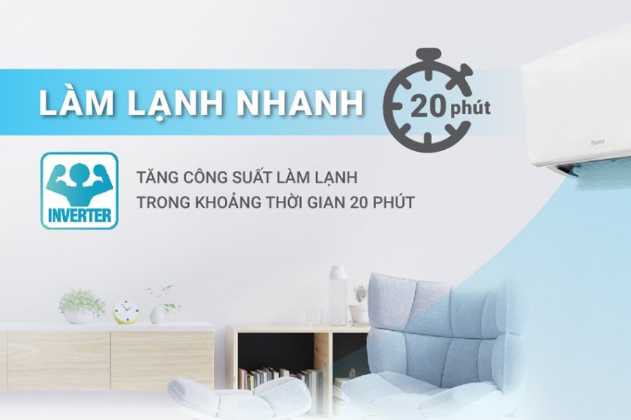 - Công nghệ Inverter giúp tiết kiệm hiệu quả, đồng thời, cải tiến độ ồn dàn nóng và dàn lạnh giúp máy hoạt động êm ái, duy trì nhiệt độ ổn định và đạt công suất tối ưu.