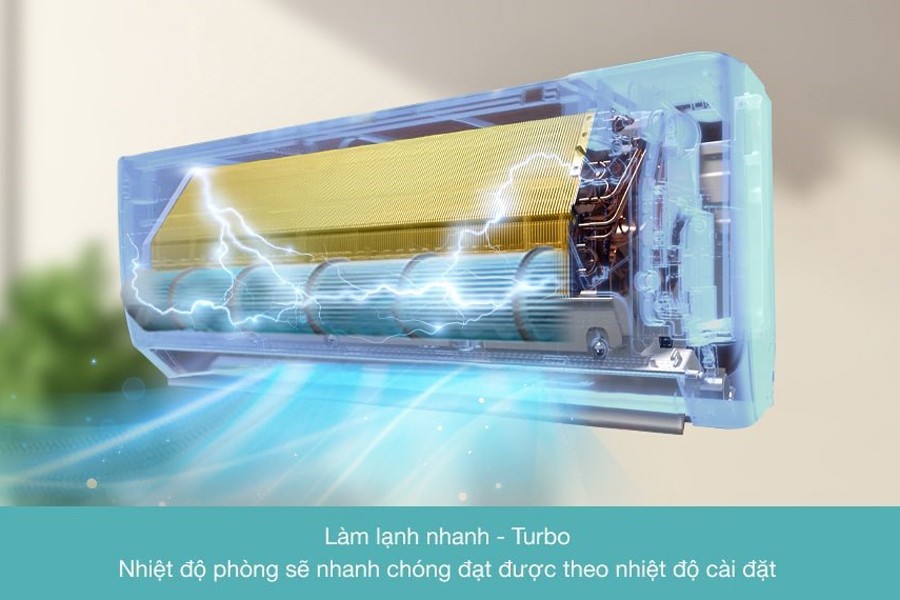 Nhờ có chế độ Turbo, máy lạnh Gree 1.5 HP mang lại tốc độ làm lạnh nhanh, chỉ trong vòng 3 phút, giúp bạn tận hưởng ngay không gian mát lạnh.
