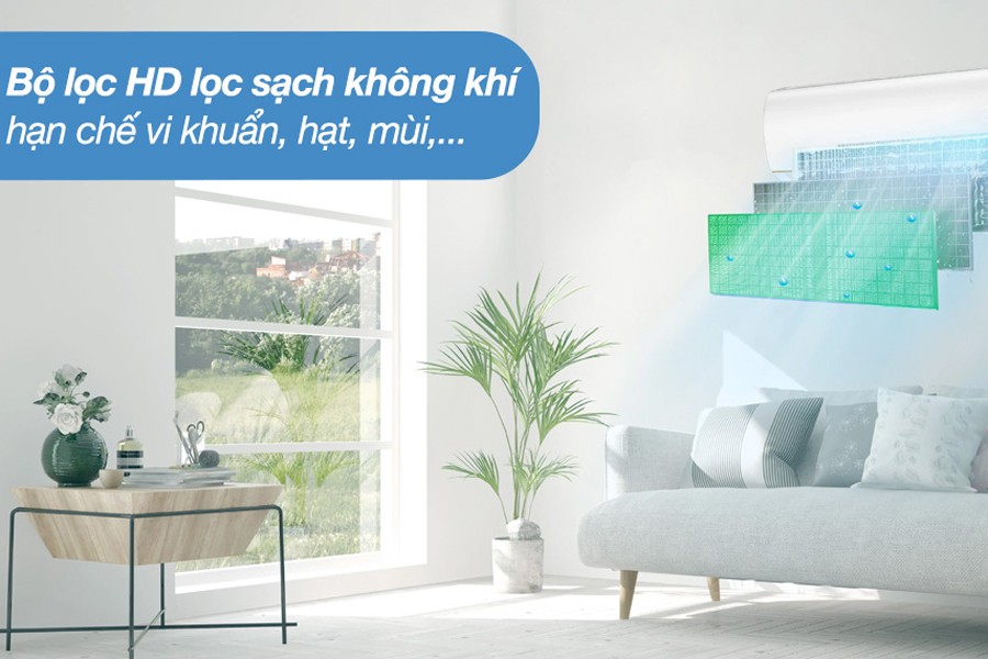 Bộ lọc HD giúp lọc sạch không khí, hạn chế vi khuẩn, hạt, mùi và bụi bên trong phòng. Từ đó bảo vệ sức khỏe cho các thành viên trong gia đình.
