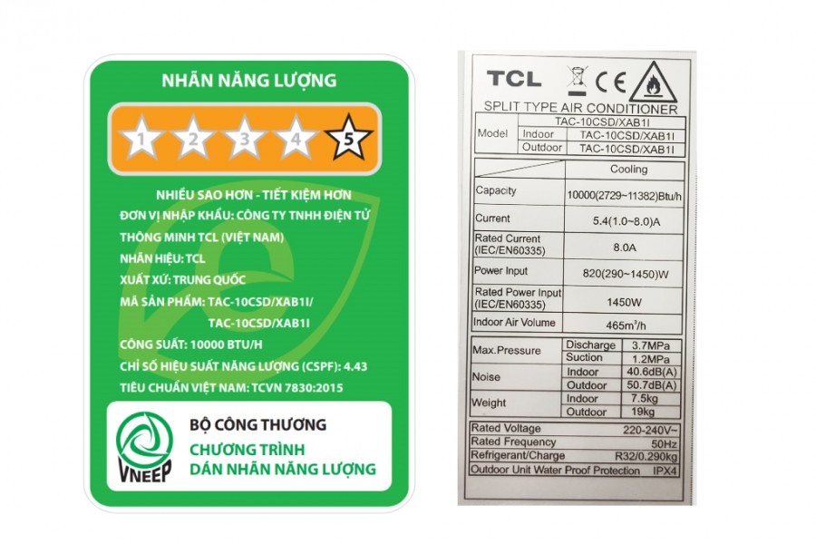 - Sản phẩm đạt chuẩn 5 sao về nhãn năng lượng với hiệu suất 4.43.