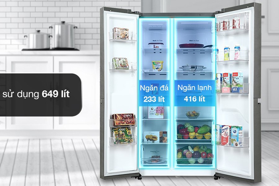 - Dung tích 649 lít phục vụ cho nhu cầu gia đình từ 5 thành viên trở lên.